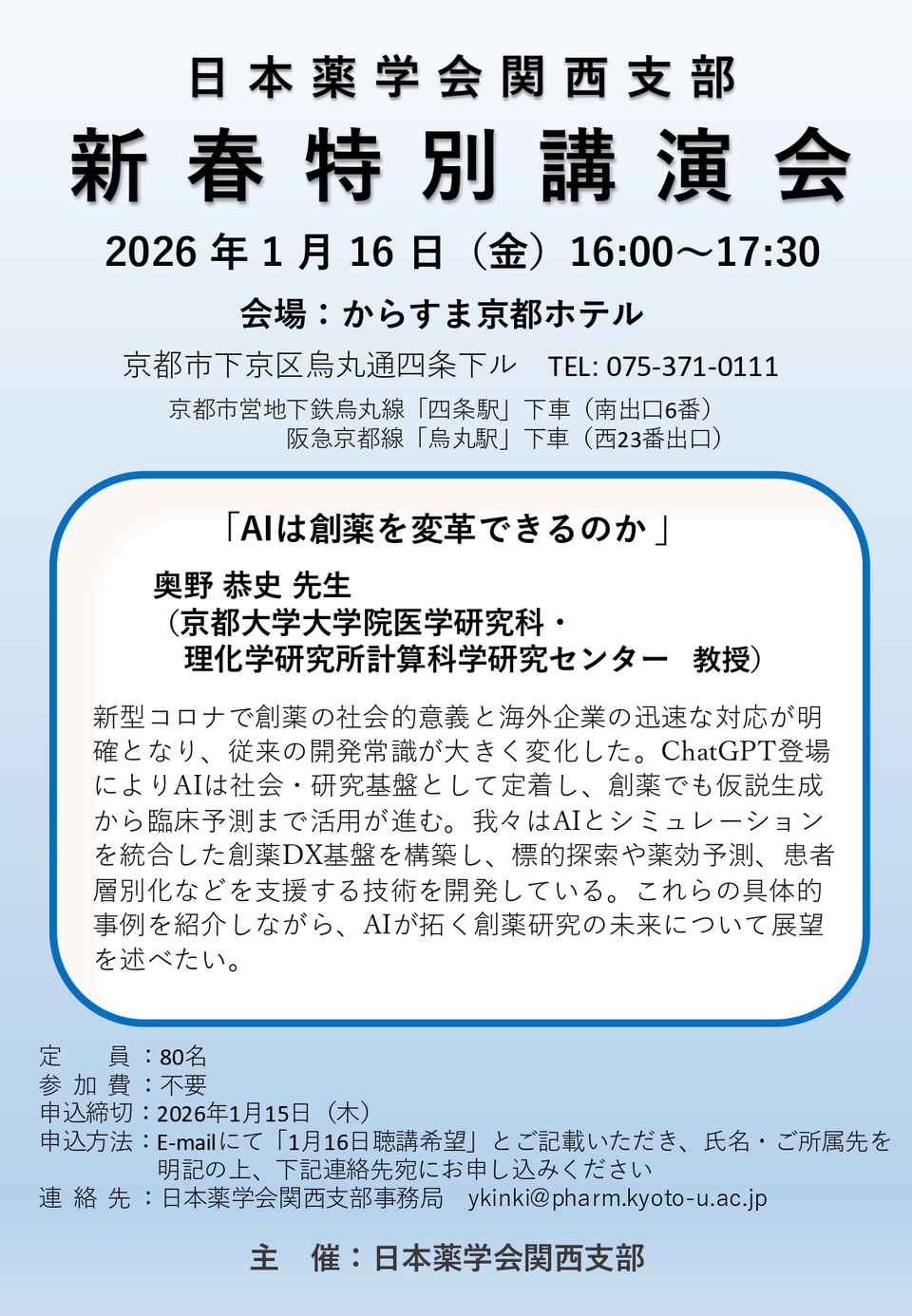 2025年5月14日(水)16:00〜 京都大学大学院薬学研究科 終了いたしました